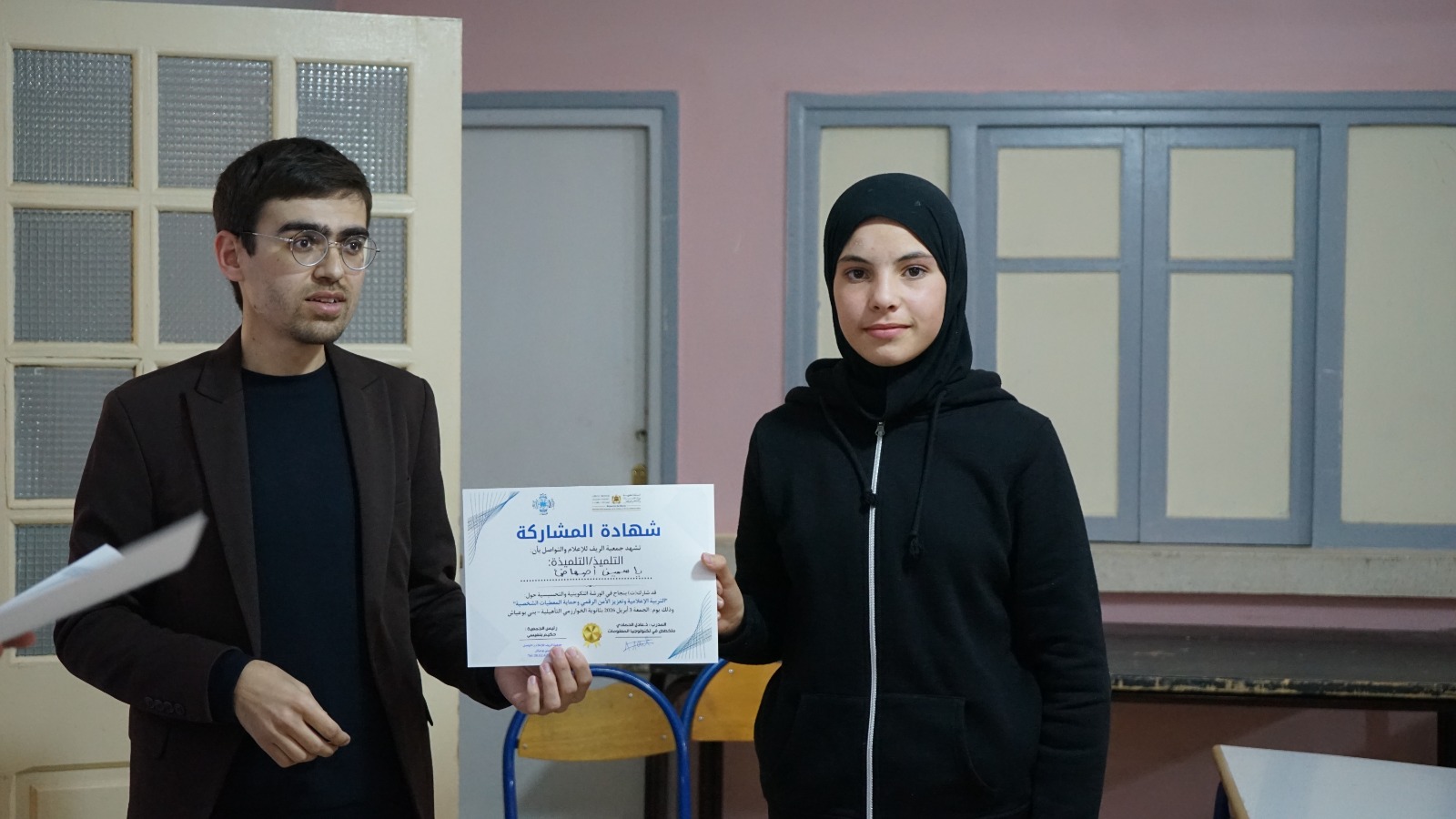 وفي ختام هذه الدورة التكوينية، تم توزيع 40 شهادة تقديرية على التلاميذ والتلميذات المشاركين، تقديراً لانخراطهم الفعّال وتفاعلهم الإيجابي مع مختلف فقرات اللقاء، وتحفيزاً لهم على مواصلة الاهتمام بقضايا التربية الإعلامية والأمن الرقمي. كما شكّل هذا التكريم لحظة رمزية للاعتراف بجهودهم وتشجيعهم على تبني سلوك رقمي واعٍ ومسؤول.