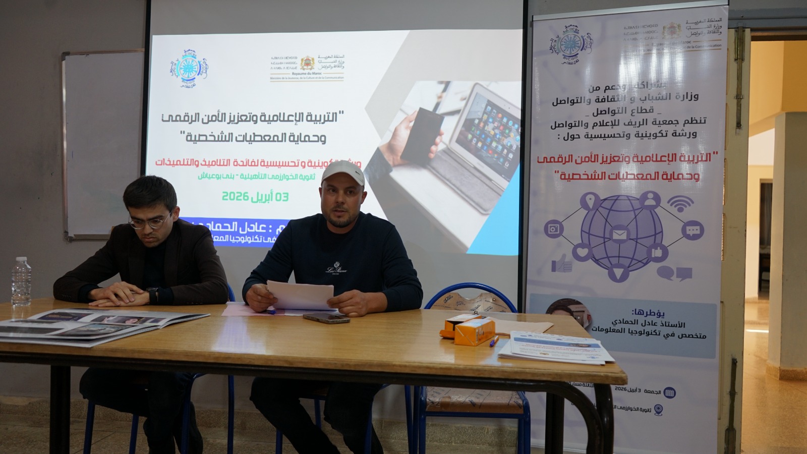 نظّمت جمعية الريف للإعلام والتواصل، بشراكة ودعم من وزارة الثقافة والتواصل – قطاع الاتصال، يوم الجمعة 3 أبريل الجاري، دورة تكوينية لفائدة تلاميذ وتلميذات ثانوية الخوارزمي التأهيلية، تمحورت حول موضوع “التربية الإعلامية وتعزيز الأمن الرقمي وحماية المعطيات الشخصية”، وذلك في إطار الجهود الرامية إلى نشر الوعي بالاستخدام الآمن والمسؤول للفضاء الرقمي.